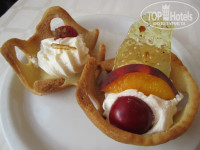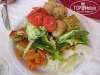 Питание в столовой разнообразное, фрукты: арбузы, персики,очень вкусная, сладкая алыча; мясо: много, но в основном птица: индейка, курица; разнообразие овощей:баклажаны, кабачки,огурцы, помидоры, разные виды капусты и еще много чего, все приготовлено очень вкусно. Каждый день на завтрак свежевыжатый апельсиновый сок. Вино: белое, розовое, красное. Мне больше всего понравилось розовое. Кому необходимы более крепкие напитки, то их можно найти в баре, но если вино действительно вкусное, то эти пресловутые крепкие напитки так себе. Еще у них неплохое пиво, оно подается в в круглосуточном баре, рядом с танцплощадкой. Колбасу вообще не рекомендую(((В целом голодными мы не оставались никогда и от жажды не страдали.
