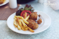 Закуски в баре на пляже - куриные крылышки в кляре, картошка фри/деревенская, пицца, гамбургеры.