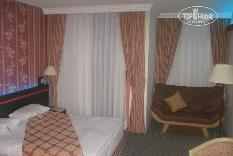 ПИТАНИЕ. Перед отъездом читала здесь отзывы, писали, что есть нечего. Я уж не знаю, видимо очень привередливые туристы были. Мясо было (курица, идейка), фрукты: арбузы, апельсины, абрикосы, персики, сливы, один раз давали черешню. А яблоки есть всегда-на ресепшене в лобби. Но често говоря, фрукты просто уже не лезут после того как съедите что было до этого. К чаю чуть ли не 15 видов пирожных и на обед и на ужин. Есть можно вообще круглосуточно. Завтрак ранний и поздний (зананчивается в 11), а с 12.30 до 14.00 обед,после 14.00 около ресторна готовят булочки (типа гамбургеров), в 16.30 до 17.30- чай, еще пекутся блины с различной начинкой, а 19.00 -уже ужин. И еще есть суп с 23.30. На суп сходила один раз,когда поздно приехали из Аланьи (сходила больше на экскурсию, потому что есть не хотелось, хотя мы в тот день и пропустили ужин). Суп на любителя:) Не то,что обычно мы понимаем под словом "суп". Кухня мне понравилась, повора готовят вкусно. Никто ничем не травился. И не было как в других отелях, что когда на чай заканчилось печенье и кто-то не успел, то ему говорят, что все, извините, закончилось. Было все и в изобилии. Наелась картошки фри, кола, фанты - море. В лобби баре (напротив респшена) наливали натуральные соки из пачек, очень нравилось пить там чай из турцких чашечек. Алклоголь был, наши русские сограждание - некоторые- весь день пили пиво- никто не умер. Алкоголь не употрболяю, поэтому не пила и не разбираюсь. Однин раз пробывала бренди-колу, тот кто заказывал, сказал что вкусно :) Пробывали вино, не очень понравилось. Но всегда в свободном доступе - и белое было, и красное.