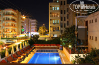 Территория отеля маленькая, небольшой бассейн, есть лежаки и плавательные матрасы.