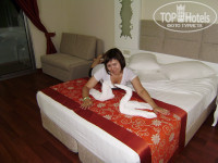 По приезду нас тут же отправили на ужин, потом мы поднялись на наш 4 этаж. Номера просто замечательные! Мебель новая, постель чистая, свежая, белоснежная, лебедей в озере смастерила горничная. В номере просторно, уютно. Кондиционер работает так, как и должен! НАРОД, просто надо уметь пользоваться им, и не будет продувать вас и ваших детей!!!