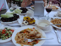 По еде: вполне нормально, курица и индейка каждый день! иногда говядина и практически каждый день рыба! Всем всего хватало. салаты конечно бестолковые и сладости мне совсем не понравились. Из фруктов: арбуз, дыня, яблоки, апельсины, грейпфруты, черешня (правда всего один раз была). Никто голодным не оставался! всего много!!! Не понимаю тех кто пишет, что еда отвратительная. Нормальная еда! не нравится: надо было ехать в отель подороже!
