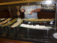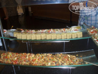 Ну с номером вроде всё, теперь про питание. Начну с того что нас с женой очень трудно удивить так как и я и она работаем в ресторанном бизнесе. Но они смогли. Во первых никаких тазиков с салатами вы не найдете. Все выложено на красивых блюдах, как только что нибудь заканчивается, просто приносят новое а грязное забирают. Во вторых это ассортимент, огромное разнообразие разных закусок, салатов, гарниров, рыбных и мясных (говядина, курица, индейка, баранина) блюд, фруктов, сыров, йогуртов, десертов и тд...... Есть диетические блюда. На ужин обязательно что нибудь жарят на мангале. Никаких очередей нет ни зачем, всем всего хватает. И третье, самое главное, все очень, очень вкусно.