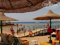 Узкая полоска, заставленная лежаками до отказа. Народа на пляже набивается много с двух отелей, но свободные лежаки были всегда. Вход в море есть с понтона, есть с берега по камушкам и кораллам. Без обуви находиться в море проблематично. Самое большое неудобство - это наличие водного транспорта прямо в зоне купания. Запах бензина и постоянное ощущение, что вам проедутся по голове. Плюс количество народа напрягало лично меня. По этому я уходила левее от пляжа. За небольшим скалистым выступом находится пустынный приватный пляж. Там много кораллов и рыбок. К слову о рыбках... ближе к понтону они более кусачие (в прямом смысле слова атакуют), видимо прикормленные. Подальше от пантона проблем с укусами не было.