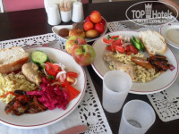 Питание в отеле нам нравилось: много овощей, фруктов, разнообразных блюд из курицы и всякой разной выпечки. Всегда всё свежее. Очень вкусный хлеб. В баре разнообразие напитков, вино - не очень, а пиво и джинтоник - классные. Если хотели вечером посидеть со спиртным, то набирали до 22 часов, позднее - платно.