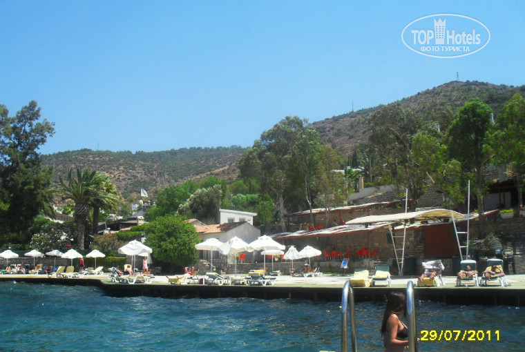 Мы прибыли в 10-ом часу, и хотя заселение начинается в 14.00, нас заселили за 5 мин., не задавая лишних вопросов (благо с английским у нас проблемы). Просто выдали ключ и дали сопровождающего. Под веселую болтовню нашего Мехмеда мы поднялись на 7-ой уровень. Какой прекрасный вид открывается там на море и близлежащий порт! аж дух захватывает. Нас поселили в уютный 2-х местный номер в 5-ти метрах от бассейна. Тишина и покой. Ни разу за все пребывание в Вере лично я не услышала никакого беспокоящего шума, криков, и приставаний от турецких мужчин, которыми нас так пугали дома. Они конечно очень темпераментны, но для них "нет" означает "нет" и мы гуляя по ночному и далеко полуночному Бодруму чувствовали себя в полной безопасности. Кстати добираться до Бодрума лучше пешком, неторопясь вдоль моря. Идти всего-то минут 10-15. После 20-ти в отеле купаться в бассейнах и море запрещено. Поэтому мы шли на городской пляж. Кстати там песчаный пляж и можно наслаждаться уединенным плаванием хоть до самого утра. А если вам нужно позвонить, то лучше купить таксофонную карту (4 дол) и пройти в город. Нам хватило на 5-6 разговоров с домом.