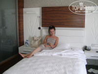 Встретили нас хорошо, быстро оформили и проводили в номер, все заняло минут 10 максимум. Номер был на пятом этаже с красивым видом на море и отель G. Мы не будем оригинальны, если скажем, что номер был отличным, все новое, чистое, климат-контроль ни разу не подводил, уборка ежедневная, смена полотенец и постельного белья во время.