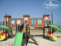 Детская площадка есть. Там построен домик с несколькими горочками, как у нас в России во дворах. Маленький круглый бассейн, диаметром метра 1,5. Еще небольшое здание. Подозреваем,что это мини-клуб и там развлекаю детей. А еще, когда мы гуляли по пляжам соседних отелей, то встретили группу детей из нашего отеля. Человек 15 с полотенцами и двумя аниматорами. Предполагаю, что они шли в соседний отель "гонять" на водных горках.