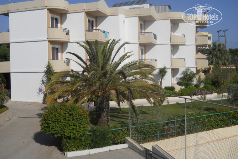 Отель находится на расстоянии около 2 км от моря, чем и объясняется его относительная дешивизна. Пожалуй это, а также платный кондиционер, являются единственными минусами отеля. Размещают туристов в одном из пяти небольших трехэтажных корпусов, которые располагаются вокруг небольшого бассейна, баскетбольной и детской площадок. Каких-либо других достопримечательностей территория не имеет, однако, сама эта территория зеленая, ухоженная. Рядом с бассейном среди деревьев располагаются лежаки (бесплатные), работает бар.