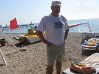 Убогая коротенькая береговая линия, лежаки вплотную, впритык, после 10.00 все занято. Мы приходили в 9-9.30, первая линия уже занята. На пляже зонты, лежаки, матрасы, вход в море - камни, идёшь дальше - булыжники, как буд-то Лазаревское или Лоо (под Сочи)