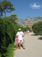 Территория маленькая красивая, зеленая, много плодовых деревьев - мандарин, апельсин, авокадо, гранат.
