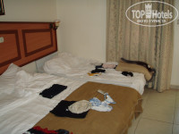 На следующий день я подошёл к гиду и объяснил ситуацию. Она об этом рассказала менеджеру на ресепшен. Он сказал, что номеров в Парке-1,2 нет и предложил за 160$ номер в клубе. Я сторговался за 120$. Поначалу предложили номер 1135 в 11 корпусе на первом этаже. Хороший. Позже нашёлся и второй этаж. Номер 1141 с видом на небольшой сад и народ не ходит. Солнце после 16.00. У нас двуспальная кровать, для ребёнка отдельная кровать. Кондёр правда над нашей постелью, но он особо не докучал, не так сильно дул, как в Парке-2. Я его периодически отключал. Номер для нас был достаточно большой, с ванной и хорошим балконом. В номере очень тихо. Ванна нормальная. Правда где гель для душа, а где шампунь не поймёшь. Во флаконах без надписи. С нашим рейсом приехал мужик с дочкой. Так их вообще в первый день поселили в номер для инвалидов. Потом, правда, переселили в нормальный.