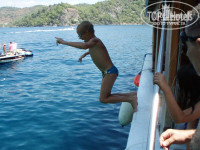 Если хотите на водные экскурсии, рыбалку и пр., то езжайте в Фетие. К примеру, в Пегасе экскурсия «12 островов» с 4-мя остановками для купания стоит 115$ на троих (45$ взр. 25$ ребёнок). На набережной Фетие десятки разных морских судов от лодок, до фешенебельных яхт. Мы съездили за 35$ (60 тур. лир). Кстати в лирах выходит везде дешевле. Правда по-русски на лодке никто не говорил и по-английски особо никого не было. Но нам это и не надо было. Мы отдохнули классно. Было 5 остановок у берегов и островов. Ныряли с ребёнком с 5-ти метровой высоты нашего морского судна. Вода везде разная, особенно впечатлила остановка «Аквариум». Вода необыкновенно синяя. На обед нам дали спагетти с рыбой, курицей и котлетками. Рыба свежая и вкусная. Напитки за доплату. Мороженое 5 лир (80 руб.), Вам для примера. Мы, конечно, всё взяли из отеля. Если даже прибавить стоимость дороги до Фетие и обратно (20 лир на троих = 330 руб.), то получается всё равно дешевле.