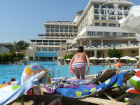 Территория довольно просторная. Удобный выход к морю, вместительный пляж неплохой берег очень соленное море и не совсем чистое... В 6 часов вчера из под вас выдергивают матрасы с лежаков и складывают зонтики, то же самое происходит и возле бассейна, радует рядом с пляжом наличие бара где можно неплохо посидеть с пенопластовыми стаканчиками. Глядя на немецких товарищей и радуешься за их стеклянную тару.