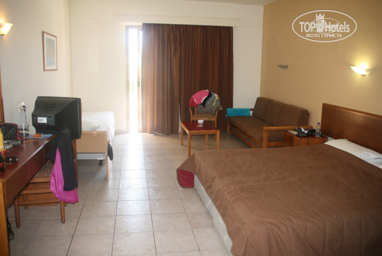 Номер. Очень большой. Можно разместить 5 человек. Мебель обычная,не новая..В номере чайник, микроволновая печь,холодильник и посуда есть.ФЕН платный, в номере НЕТ.Пульт от кондиционера и тел. дают за депозит.