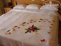 Итак приехали мы в отель в 22 часа, одели браслеты на руку, номер дали сразу (№1205), отправили в ресторан ужинать правда после просьбы- дети голодные!(( До номера доехали на машинке отеля- далеко и до моря и до ресторана и до бассейнов- дети не были готовы столько ходить! Последняя линия бунгало это номера 1157-1252! Номер правда шикарный: второй этаж, две комнаты, два тв, два балкона- на одном шезлонги, на другом столик и два кресла- все окна и балкон с видом на море ( это при том , что оплачивали мы номер стандарт- два взрослых и два ребенка 9 и 7 лет) на следующий день нам с неофициальной доплатой поменяли номер (№713) на первую линию ( номера 701-785) , такой же по планировке. Что касается мебели , то да она не новая, но нас не напрягало, что мы не вдыхаем аромат свежекупленной мебели))))Кровати хорошие, ребенку поставили доп.кровать лучше и мягче дивана у второго ребенка)))) К уборке номера претензий нет-всегда свежие полотенца, цветы на постели, вода в мини-баре( положено по одной 1,5 л. бут. на номер -ставили 2 бут.) Чаевые оставляли каждый день по 1 доллару, иногда дарили наш шоколад-любят его там))) Так что жить в бунгало все-таки лучше-нет шума от бассейна и дискотек и ... короче нам там очень понравилось!