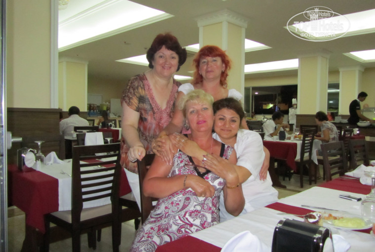 Отдыхали в отеле с 25.07.2011г по 08.08.2011г. Отдыхали втроем с коллегами по работе. Отель новый, нам очень понравилось. Разместили очень быстро, пока позавтракали и уже номер предоставили. На рецепшене русскоговорящие администраторы. Хочется отметить девушку по имени Марал, очень улыбчивая, приветливая, вежливая. В номерах есть все необходимое, все новое, красивое, постельное белье и полотенце белоснежные. Уборку проводили прилично, полотенце менялись ежедневно. Мы в номер приходили только ополоснуться, переодеться и переночевать, все остальное время проводили или на море, или в бассейне, возле бара... Не продуман кондиционер, висит прямо над кроватью, если отрегулировать, что бы не дул на одну кровать, он дует на другую кровать, а без него вооще никак нельзя, так что, приноравливались как могли уж... Питание, конечно, на любителей (шведский стол), но нам очень понравилось, голодными не ходили, очень вкусно готовили повара, видно было, что очень старались, очень часто рыба была(тунец) - бесподобная, и курица и котлетки, в общем, дома такого меню не наготовишь, и сладости великолепные, фруктов большой ассортимент. В баре тоже хорошее обслуживание, Февзи и Исмаил "крутились" как заводные, молодцы, успевали всех обслужить и взрослых и детишкам напитки налить...Самое главное, общение было, люди из разных городов России, СНГ и как одна большая семья. Лежаков хватало всем и на море и возле бассейна. Анимация, правда, еще не настроена была, но аниматоры очень старались. До отъезда читала некоторые отзывы и в ужас приходила (из нашей компании я второй раз ехала в Турцию, в том году отдыхала в Анталии), куда же мы едем, но когда приехали, сразу поменялись взгляды, люди сами себе делают отдых такой, какой хотят, поэтому, на некоторые мелочи вообще не обязательно обращать внимание, нам отдых очень понравился и рекомендуем посетить этот отель. Не учтена вентиляция в фае, очень уж там душно, но отель очень красивый...