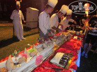 - пища разнообразная и очень вкусная. На завтрак помимо стандартного меню – также инжир, лукум, мёд в сотах 2-х сортов, мёд в упаковках, варенье 10-ти вкусов, горячий шоколад из фонтана, сладости, фрукты всё в изобилии мы даже за 16 дней не всё попробовали. На обед супчики можно и разнообразить. Ужин всегда разнообразен, вкусен, сытен, удержаться от изобилия блюд невозможно – курица 2-3 вида, говядина, индюшка, колбаски, рыба свежежаренная 2-3 вида, рыба в кляре, рыбные стейки, рыба холодного копчения. Вино местное очень даже не плохое. По вечерам в баре разнообразные коктейли – «маргарита», «мохито» и т.п.;