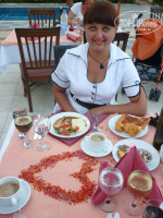 Обслуживание было приятным, вежливым, ненавязчивым, особенно приятные люди работали в ресторане. Кормили вкусно, достаточно разнообразно. Фруктов было достаточно. На обед и ужин было местное вино, разливали его официанты прямо из бутылок. Вообще очень понравилась их работа, за день-два запоминались твои предпочтения, тарелки уносили быстро, напитки приносили своевременно. Все было очень мило и приятно. В один вечер когда узнали, что у меня день рождения, всей толпой дружно мне пели "Happy Birthday", вовлекая всех присутствующих в этот процесс. Главный менеджер по ресторану и бару Мехмет очень хорошо руководил всем процессом. Каждый прием пищи был похож на волшебную сказку.