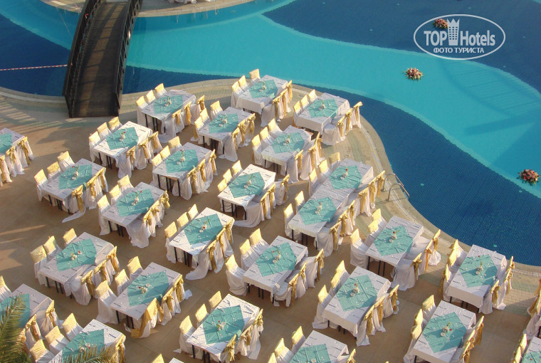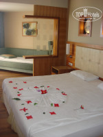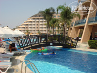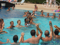 Отдыхали с 04.08.11. по 18.08.11. Нас отель устроил по всем параметрам. тихая и спокойная публика. Русские не преобладают, что я бы отнесла к достоинсву отеля. Много немцев. Питание отличное. К открытию не торопились. Еды, посуды и столов хватает всем когда бы ни пришел в ресторан. Жили на 3 этаже рядом с главным лифтом, номер с видом на море. Поселили быстро. номер убирали хорошо, но не всегда в удобное для нас время. Из главных недостатков, я бы выделила море. Пляж все же условно можно назвать песчаным, галька есть на входе и в воде под ногами большие валуны. Заход лучше правее пирса. Детей очень порадовало наличие каруселей и водных горок. Через дорогу от отеля дельфинарий. Пришлось воспользоваться медицинской страховкой. Позвонили в страховую из номера, через десять минут приехала скорая и отвезла в поликлинику. Врач осмотрел, сделали укол, прописали лечение и выдали лекарство, обратно отвезли. Гид наш не очень понравился, но ,в принципе, на имеющиеся у нас вопросы ответы получали и на этом не зацикливались. Отель конечно семейный. Детей жуткая туча, плач и крики день и ночь в любом уголке отеля. Поэтому жаждущим развлечений, приключений и т.д. , отель нужно выбирать другой.