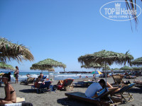 на территории 2 "взрослых" бассейна и 2 "детских" . пара из них находилась во дворе нашего корпуса. они работали с 9 до 21. потом закрывались двери на ключ. в море вход с пантона. так как пляжи все государственные, то они видимо совсем не заботятся о их благоустройстве. до него идти нужно спустившись у бассейна по крутой лестнице серпантинного вида. железная лестница у самого пантона не имеет верхней и нижней ступеньки. но мы даже с маленьким ребенком умудрялись спускаться с него. потом ходили на песчаный пляж, мин 15 идти по набережной. вполне погода позволяла, думали будет жарко очень. там можно заплатить за зонтик и лежаки 5 евро, или разместиться самим на полотенцах. по дороге много таверн. цены примерно одинаковые мясные-рыбные блюда 7-13 евро, пиво 2 евро, бокал вина 1 евро, 0,5 литра 4,5 евро, мусака 6-7 евро. фрукты довольно дорогие, нет ничего необычного. напитки фанта кола 0,5 1 евро, соки маленькие 0,6-1,1 евро.