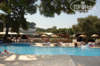 лежаки надо было занимать,как на пляже так и у бассейна.. в этом минус... один раз пришли утром, а месть вообще нет.. еле еле нашли один лежак.. так и тусовались на нем втроем... поняли всю систему, и стали занимать утром сами)) с 10 утра приходили аниматоры и на бассейне включалась музыка, начинались игры, позже водный футбол, аква аэробика, степ... наши украинские девочки в команде аниматоров просто молодцы... большое им спасибо)