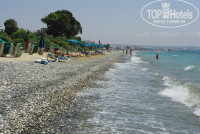 До пляжа «топать» метров 150, по бетонной дорожке, затем перешли через перекрёсток, и вот, вы на пляже. Сначала пляж нас не впечатлил, но потом, поколесив по прибрежным городам и пляжам, поняли, пляж Henipa, один из лучших! Да, да! Пусть на берегу и крупная галька, зато сразу после входа в воду, песок. Глубина постепенно начинается метров через 30-40. На пляже, возле прибрежного ресторана, где частично песок, похожий на мелкую пыль, имеется аренда зонтиков и лежаков. В будние дни народа, почти нет. А в выходные, это местечко для себя облюбовали местные. В воскресение, в прибрежном ресторане «BlueWave» свободное место на открытой терассе можно найти с трудом. Надо отметить, что именно в этом ресторанчике, в основном мы и обедали, спустя некоторое время нас уже узнавали и приветствовали как постоянных клиентов. Нельзя сказать, что ассортимент очень широкий, но всё приготовлено вкусно, да и цены приемлемы. Мы «тяготели» к рыбным блюдам и в среднем кушали на 25-30 евро на троих. Это деревенский салат на 3 персоны (6,5 евро), порция жареной рыбы (ципура, барабулька, филе или кальмары) 8-11 евро, заказали приготовленных на гриле осьминогов. К рыбным и мясным блюдам в комплекте идёт тарелка жареной картошки. Помимо этого, два сока по 1,5 евро и бутылка холодной минералки 1,5 л (1,5 евро). Когда сдали машину, брал бутылку кипрского пива «КЕО» (3 евро).