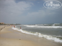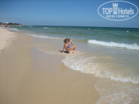 песочек не жжется! беленький и мелкий - класс! Пляж убирают! Для тех у кого все включено лежаки бесплатно, у кого не все то 1 динар в день, или все на песочке лежат - это нормально. Торгаши ходят, но по береговой линии - на территории пляжа отеля НЕТ. Территория отделена колошкаи и канатами. Да торгаши пытаются впаить все что только можно- а ты не делай заинтерисованный вид и горяие глаза - пройдут мимо! Море когда штиль здоровске! Но на 3 день начался шторм и волны. пригнало грязь а с ней и МЕДУЗ! их сезон в августе вообще. Жалятся так: сначала как утюгом потом может быть раздражение как после крапивы, если не сильно то через час ничего нет, если конкретно заденет то на день.. И в волнах особо не покупаешься, только покачаться на волнах. Водные развлечения стандартные - парашут, банан, ватрушка и тд.