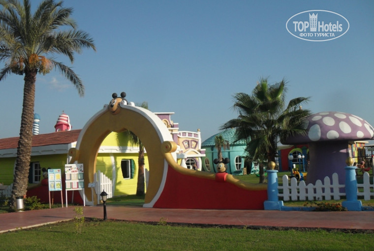 Только только вернулись с отпуска! Именно поэтому, пока всё свежо, решили написать! В отель можно поехать только просто из-за детского отдыха, потому что организация его там просто на высшем уровне. Очень жалеем, что из-за опосений, связанных с отзывами, взяли тур только на 1 неделю. В следующий раз - минимум на 2! Во-первых, детский клуб новейший, и наверное правду говорят, что самый огромный в Европе. На его территории 5 разных домиков с видеонаблюдением, красочными рисунками и светильниками в виде парашутистов и машинок. Это просто рай! Также, построена площадка вместе с различными горками и пушками. Вот только наверное 1 минус - в эту зону большим деткам нельзя. Вот руководству необходимо обязательно над эти подумать. Также, в миниклубе работают замечательные девочки - Женя, Лена, Аня. Огромное им спасибо в организации отдыха наших детей. Мы обязательно вернёмся! Питание детское тоже не плохое. Рассредоточено оно в 2-х местах: в самом миниклубе и в главном ресторане. Есть в принципе всё - кашки на завтрак, молока, пюрешка, котлетки,овощные пюре. По нашему общему семейному мнению слегка хромают номера - особенно мебель. Вот стоит руководству обратить на это внимание. Стоит также сменить бельё на наш взгляд. И обязательно наругать горничных, которые с 8 утра громко говорят!!! Ужасно напрягало, правда!