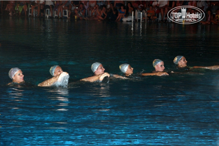 Также, самое глвное, что толкнуло меня на написание отзыва - турецкий празлник Байрам! Были поражены широтой организации его празлнования! Во-первых, был приготовлен шикарный ужин! Просто глаза расбегались от всего увиденного! После ужина, возле главного бассейна было множество сладостей, сладкая вата, кукуруза, кальян. Был приглошен коллектив по синхронному плаванию. Супер!
