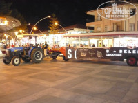 Рядом с отелем остановка, от которой можно доехать в центр Белека. Поездку можно совершить и на такси, но я советую в открытом вагончике, который прикреплен к обычному трактору. Стоимость 1 доллар с человека. Ехать 15 минут в одну сторону.