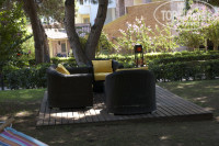 Номер (2314 копрус D). Хотя и учли пожелания о территориальном размещении, но не учли что ребенок еще с нами. Номер был маленький. Для ребенка принесли манеж-кровать, но в ней он не умещался и попросили или раскладуку или кресло-кровать (решали вопрос на ресепшен), но нам сказали, что номер не предназначен для еще одного полноценного спального места и все же принесли раскладуку (достаточно удобную для взрослого человека), ее приходилось собирать каждое утро (собиралась легко), чтобы без затруднений передвигаться и пользоваться номером. Балкон и ванна (с душевой кабиной) просто огромные, что впринципе не обязательно на отдыхе. Телевизор отличный - ЖК 32, но его размещение убило!!!!)))) Перед кроватью был встренный шкаф, потом балконная дверь, а уже потом в нише висел телевизор.