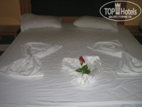 Номер: сам номер нам в принципе понравился. на втором этаже (у них это первый) с видом на бассейн и частично на море. в номере спальня с двухспальной кроватью, во второй комнате встроенная мини-кухня с холодильником, электроплитой, посудой, раковиной, стол, стулья, двухярусная кровать и отдельно стоящая кровать. в ванной фен, туалет, раковина, ванная. Из туал.принадлежностей только мыло и бумага. в номере есть кондиционер (бесплатно), телевизор, сейф (платно), телефон внутренний, балкон. Пульт от телевизора у нас не работал, мы обратились на ресепшн, нам сразу пришли и заменили его на новый и заодно дверь входящую подкрутили, т.к. она плохо закрывалась. уборка каждый день, смена постельного белья и полотенец тоже. Минусы - очень много комаров, муравьи и муж один раз видел большого таракана.