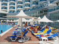Общее впечатление об отеле хорошее ! Отдыхали семьёй( со 2 по 11 сентября) В отель прибыли в 21.30 .после ланча,без проблем заселили в номер 1006,сейф 2$ сутки.Номер хороший ,но после отавленного 1$ на след.день ,в номере хорошо прибрались ! Вид из номера на 3(врезавшийся в скалу отель и вышка ЛЭП). Питание отличное ,можно заказать ресторан ( турецкий или итальянский) на выбор ,через терминал который расположен около ресепшена ,но русского языка на нём нет. Можно посещать сауну каждый день бесплатно ,тутецкая баня с комплексом 35$ на чел.,там же получаем пляжные полотенца в обмен на пластиковые карточки (выдадут при заселениии) .Туристов из России мало в основном немцы и турки. Анимация на 4. Юле из Перми привет .Территория отеля ухоженая, красиво,бармены приветливые ! ;) .Анекс номера расположнны на тер.отеля ,двумя 4х этажными корпусами .Пляжный ресторанчик хороший, лежаки надо занимать около 9.00 ,почемуто для 5* очень мало маста на пляже !?