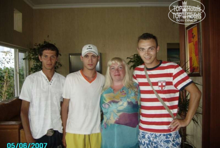 Отдыхала в Турции первый раз! В принципе понравилось всё, но это плюс анимационной комманде - Григорию, Олегу и Владимеру! Скучать недавали ни минуты!!! Дети просто с ума сходили от Олега, причём любого возраста, танцевал просто супер! Умеет завести всех кто находиться рядом! Энерджайзер наш! Владимер - ну это супер человек каторый всегда вёл аква аэробику с супер-настроением! Стоило услышать его коронное АКВА-ДЖИМ и все проблемы улетучивались, зато появлялось супер настроение! Григорий - он никогда и никаво не даст в обиду, так же как и все остальные! Каждое утро мы ждали его ДОБРОЕ УТРО ВСЕМ!!! Когда мы собрались уезжать домой, то оказалось что ребята тоже уезжают!!!! очень жалко и обидно, мы соборались вернуться в августе, но теперь непоедим!!!! Плохо без них!!!! На рецепшине всегда готова была придти на помощь девушка из России которая говорила что работает недавно, но у неё получаеться профессиональнее всех вместе взятых!!!! Просто умница!!!! Единственное что омрачило наш отдых, так это последние два дня!!! Огромный минус в Отеле - это отсутствие русскоязычной музыки (обидно даже)