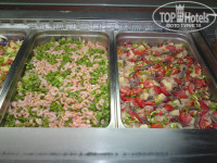 Мы брали Завтрак/Ужин. Конечно, если сравнивать с пятеркой в Египте, то можно смело сказать что кушать тут нечего)) Но это тройка и Кипр. Голодными не останетесь! На завтрак всегда подавали одно и то же. Но выбрать можно было. Например: яичница, омлет, яйца в крутую, сосиски, фасоль, огурцы, помидоры, апельсины, грейпфруты, всякие мюсли и шоколадные шарики и тосты, оливки и маслины (наверное кто то ест их на завтрак) ну и еще что-то, уже не вспомню. Ужин всегда разный, но опять же, по сравнению с Египтом еды тут мало. Кстати в стоимость ужина напитки не входят!