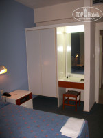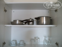 Напомнило однокомнатную квартиру, только кухня не ограждена. У нас был холодильник, электрический чайник, тостер, минидуховка и вроде 2 конфорки, тарелки, чашки, ложки, бокалы для вина, и даже открывалка. Кондиционер, фен, радио, телевизор.