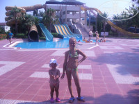 Вообщем,начала я распаковывать вещи и мне позвонила подруга,они приехали 4-мя днями раньше и заняли дюплекс возле аквапарка,она ко мне пришла и потащила в аква-парк,аква-парк-отдельная тема-АБАЛДЕТЬ )))) старшую за уши не вытянешь с горок, с утра я вставала в 6,шла с полотенцами к аквапарку занимать места и дальше спать до 9-ти,потом завтрак и отрыв на горках,потом шли обедать и спать. Единственный напряг,ровно в 14:30 стучали в дверь и кричали:мини-бар (пополняли бар напитками:фантой,колой,содовой и водой),даже когда висела табличка не беспокоить,типа спим.