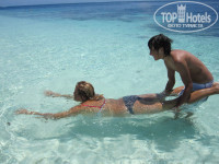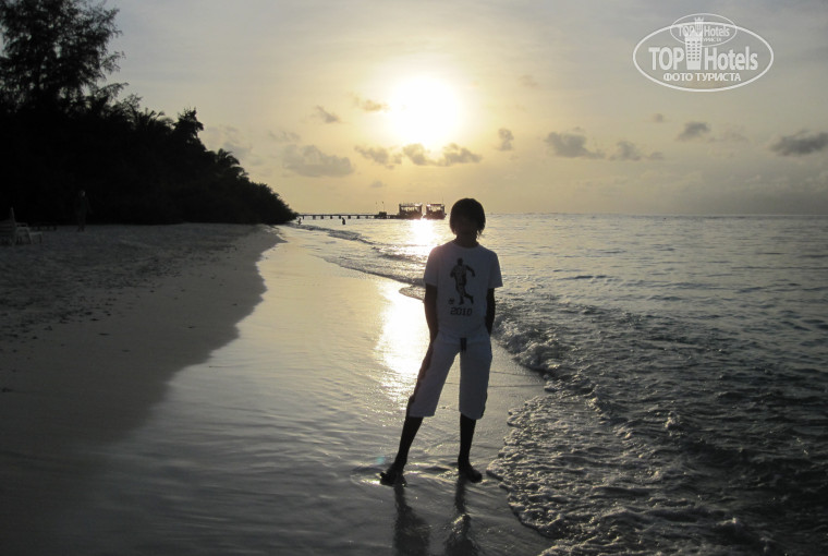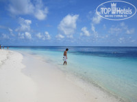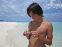 Из экскурсий брали Full day exursion (необитаемый остров+рыбацкая деревня) 72$ с персоны + 13.5%. Очень понравилось. Говорят что русские не любят на неё ездить. Были в основном итальянцы. Провели прекрасный день. Час на дони на необитаемы остров. Очень красивый и ухоженый островок. Для фото , просто бомба. Там 2 часа купаемся , загораем , фоткаемся , пока нам накрывают поляну. Прекрасно обедаем , купаемся и снова в океан на дони до рыбацкого острова. По пути перед лодкой появляется стая дельфином. Сын сидел на носу лодки и пищал от счастья, пока дельфины нас сопровождали. Погуляли часа полтора по острову. Хозяива месных торговых лавок проводили экскурсии по острову , медленно приводя туристов к своим магазинчикам. Набрали сувениров и подарков. Торговались до упора. Цены намного меньше , чем в Мале или в дути-фри. Затем снова в лодку и к 6 вечера в отель.