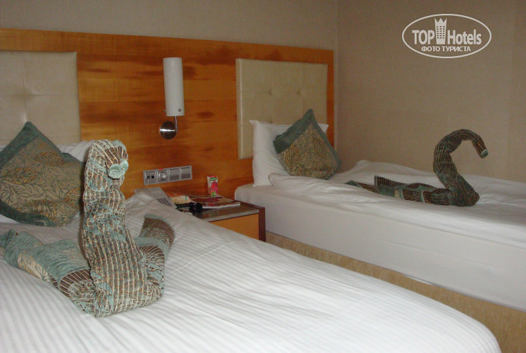 По приезду в отель около 11 часов утра, в паспорт вложили 20$, и расселение прошло мгновенно. Мы жили в вилле, до нашей виллы нас довезли на электромобиле. Номер был хороший, без каких-либо видимых недостатков. Кондёр работал отлично все время нашего пребывания в номере. В номере две комнаты с дверью, между комнатами ванная. В ванной комнате есть сауна на одного человека (платная). Все ванные принадлежности имелись(кроме предметов личной гигиены). Уборка номера и смена полотенец происходили ежедневно с утра, около 10-11 часов. На чай оставляли всегда по 2 бакса, поэтому у нас то лебеди были, то цветочки, и т.д.. Кроме того, по нашей просьбе в номер принесли 2 пары тапочек. единственный минус, пару раз видела муравьев, но видимо из-за того что мы жили на первом этаже и совсем рядом с клумбой с деревьями и цветами.