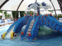 Для детей это рай!!!!! Наша дочка на море ходила 1 раз что бы посмотреть что это такое, и еще несколько раз чтобы поиграть в песок и все. остальное время мы проводили на детских горках сделанных в виде пиратского корабля. Корабль находится в бассейне, тут же есть небольшая ванна джакузи. В этом бассейне основная масса детей. Никакой ротовирусной инфекции там нет!!!! Мамочки следите за своими детьми и все. Учите их элементарным правилам личной гигиены и не ешьте что попало. И еще, думайте, когда ведете своего маленького ребенка в бассейн в подгузниках, и о других детях. Бассейны каждый день в ночное время обрабатывают с таким кол-вом хлора, что ни один вирус не выживет. Кроме этих горок есть еще совсем маленькие под тентом, но мне казалось, что из-за этого, вода в них холоднее. Мороженное очень вкусное, но только час, но в разных местах в разное время. Детскую анимацию оценить не могу, мы конечно плясали на детских диско, но отдельно от всех, так как только для детей с 4 лет. Также на территории отеля есть луна парк, что детям очень нравится.