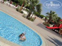 Перелет прошел хорошо, до Ларнаки летели компанией «Аэрофлот», сервис и питание на борту очень хорошие, самолет Аэробус просторный, в отличие от Боингов. При посадке долго летели над островом, такая красота, бирюзово-изумрудное море и вид сверху на остров завораживали. Процедуры в аэропорту прошли очень быстро. Был уже вечер, но еще ощущалась жара. Довезли до нашего отеля минут за 30, по дороге ехала и думала, что очень мне все напоминает любимую Турцию. Отель себе так и представляла по отзывам. Заселили оперативно. Вид с балкона был на дорогу и пальмовую аллею. Номера простые в основном здании, но все чисто и аккуратно, нареканий не было, все работало. Оставили вещи и отправились ужинать, шведский стол, выбор блюд нормальный был (всегда на ужин мясо (2 вида), рыба, салаты, было из чего выбрать в общем, фрукты: арбузы, виноград, груши, дыни, яблоки. Напитки: бокал вина 2,9 евро, стакан сока 2 и 3 евро. На завтраке напитки были бесплатные (кофе, разведенные концентраты соков). Завтрак: овощи, омлет, жареный бекон и сосиски (мясные), сыр, ветчина, мюсли, хлопья, йогурты, фрукты. Сок ребенку покупала еще в супермаркете литровый тетрапак -2 евро. Кстати, магазинчики недалеко от отеля, нужно перейти дорогу на сторону пляжа и идти направо метров 200. Они и на одной и на другой стороне дороги.