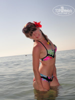 Пляж через дорогу, но это не напрягало, аккуратно по светофору переходили. Вход в море хоть и галька, но гладкая, босиком нормально, зато через шагов 15 песок и дальше только песок. Море чистое, по утрам штиль, особенно приятно было купаться с 9 утра и до 12, вода теплая, к обеду появлялись волны, цвет моря менялся, но покупаться при волнах тоже удовольствие. Лежак и зонт на весь день стоит вместе 5 евро.