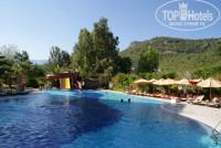 Питание очень разнообразное. Многие тут в отзывах жаловались, что не было мяса. Было! и очень много! Курица, индюшка, телятина, котлеты. Жареная рыба разных видов. Очень вкусная! Много разных салатов. Много фруктов, картошка-фри, пюре, макароны. На завтрак омлеты, блины, оладьи, разные варенья, конфитюры, мед. Много турецких сладостей. Из напитков - местное вино, пиво, водка, коньяк. Чай, кофе, соки-фанты всегда неограниченно. В обед возле бассейна вкусное мороженое. 4 раза в неделю турчанка возле бассейна пекла вкусные лепёшки.