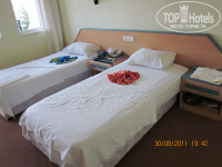 летели через Анекс Тур, рейс из Самары задержали на 2 часа, еще при получении билетов на самолет оказалось, что у 30 пассажиров, у которых фамилии начинались на буквы "Л" и "К", нет билетов на самолет, а в списках они есть. мы конечно попали в этот список.., так и поседеть можно )) вопрос утрясли, так и не поняли чья это вина. долетели хорошо, по прилету все оперативно, нашли свой автобус. ехали до отеля минут 40. было уже темно, гид рассказывал интересно, правда ни чего не было видно. в отель попали поздно в районе 11-12 часов ночи, заселили быстро без всяких взяток! номер комнаты был 1233, на втором этаже в новом корпусе с видом на горы, соседний отель Beltur, открытый ресторан, бар, бассейн, море-очень красиво! сам номер хорошенький, в ванной душевой уголок. убирались у нас каждый день! если полотенца отельные оставляли на полу, меняли на чистые, постельное белье тоже меняли. на ресепшене говорят и понимают по русски. персонал приветливый, особенно в ресторане, хочу отметить двух официантов Serdar и Kemal, всегда улыбаются, желают приятного аппетита, кричат по утрам Доброе утро, если увидят на балконе.