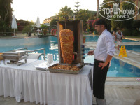 Ездили в этот отель в сентябре, остались довольны. Отличное питание, и действительно есть мясо каждый день ((курица, говядина), через день-два говядина, индейка) хорошая территория, бассейны. Общая территория с емиханом, общие бассейны и один ресторан. Что касается небольших минусов это работа кондиционера по часам, вечером перед ужином бывает жарко номере. И в конце нашего отдыха, приехало много туристов и на пляже могло не хватать лежаков. В начале отдыха этой проблемы не было даже если прейти на пляж в 10-11 утра. Хорошие вечерние шоу, анимация! Маловато молодежи, наверно это больше семейный отель. Но мы нашли хорошую компанию из 6 человек и нам было весело))). Дорога до пляжа ни капли ни утруждала, идти туда 5-7 мин. Не далеко от отеля город Сиде, и поселок Кункёй вечером можно сесть на маршрутку идоехать туда за 5 мин. или дойти пешком минут 40.