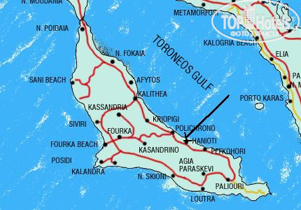 Были в этом отеле с середины по конец сентября. Отель в основном для людей в возрасте и семейных пар. Поэтому мы с женой находились в нем мало. Хотел бы рассказать самое важное: где купить вино, масло оливковое, сувениры и посещение экскурсий. В приложении карта полуострова Кассандра с поселками. Данный отель расположен рядом с поселком Криопиги на краю береговой линии. Отель хороший, номер надо брать Де люкс, стоит на 1-2 т. рублей дороже обычного, как на фото самого отеля-все новое, еще шикарный балкон со столиком. Питанее брали завтрак и ужин т. к ездили на экскурсии, стол шведский. На завтрак слишком много блюд из яиц, а в остальном все отлично.