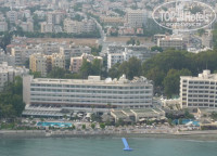 Отель очень удачно расположен, на береговом выступе в отдалении городских дорог. Наш номер окнами выходил на парковку перед входом(без вида на море). Он , кстати и не нужен был, в номер приходили ночью и любоваться видами из окна некогда было, а днем только переодеваться заходили. Так что переплачивать , на мой взгляд, не стоит... Так вот, благодаря некоторму удалению от дороги шума практически не было. Только цикады очень громко трещали ))). Громче машин.