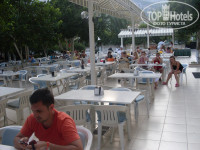 Неплохой отель для отдыха - без детей ..Территория - маленькая , но есть самое необходимое - бассейн с 2 горками , бар на улице - там вечерами проходит дискотека, ресторанчик - вечерами проходит ужин . пляж - 100 метров , много камней - лучше покупать специальные тапочки -3 доллара в торговых палатках рядом . для взрослых людей , семейных пар - вполне приличный отель , кормят нормально . Из фруктов - арбузы , дыни , персики , сливы , яблоки , мандарины .. Завтраки скудноватые - 1 раз в неделю жарили яичницу, 1 раз - блинчики , а так - варёные яйца , мюсли , мёд , варенье, помидоры , огурцы, сыр , подобие кобасы из сои . В обед и ужин - выбор большой , картошка - запечённая с сыром , рис , спагетти, много зелени - петрушка, укроп, даже не знаю названия 4 вида ещё какой то травушки-муравушки , вкусные оливки , баклажаны -, кабачки , курица , рыба, говядина .. Вполне можно всем объесться .. Рядом с отелем много торговых палаток .. Но самое главное - воздух , вокруг горы , мандариновые деревья и сосны ..