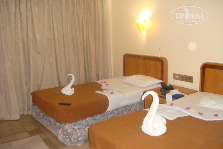 Отель - твердая трешка, хотя до этого я отдыхала только в 4 и 5*. Мне не понравилось - питание однообразоне - выбор маленький...+ горячее (мясо, кура или печень) выдают по кусочку в руки! уборка номера - сплошное вымогательство денег, и не верьте отзывам о таинственном корпусе, окна которого выходят на море!!! ЕГО ПРОСТО НЕТ! все три корпуса стоят перпендикулярно морю на приличном от него расстояни и при всем своем желании моря вы не увидите ни из одного корпуса ))) Так что не стоит переплачивать за несуществующий вид!